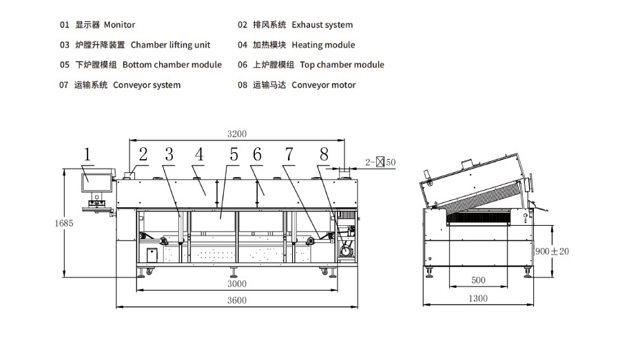 | 1.可選:機(jī)頭機(jī)尾可凸出,凸出上爐膛外側(cè)面尺寸300mm(整機(jī)尺寸會(huì)加長(zhǎng)600mm)。 2.注明:根據(jù)產(chǎn)能要求,推薦溫區(qū)數(shù)量?jī)?yōu)先選擇:4溫區(qū)、5溫區(qū)、 8溫區(qū)、9溫區(qū)、10溫區(qū)、12溫區(qū),可定制。 | |||