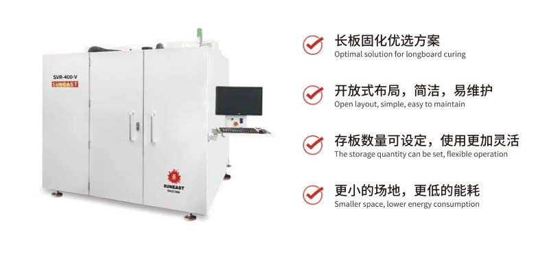 SVR-V系列在線式垂直固化爐,整機設(shè)計全新升級,更加人性化。采用分段加熱、獨立溫控,加熱更高效,控溫更精準。運輸系統(tǒng)穩(wěn)定可靠,操作維護便捷。全自動進出產(chǎn)品,智能化生產(chǎn),生產(chǎn)效率高。設(shè)備體積小,有效縮短產(chǎn)線長度。SVR-V系列垂直固化爐對于長板的固化應(yīng)用優(yōu)勢更加明顯,可容納長達1200mm的產(chǎn)品。可定制百級、千級、萬級高潔凈度設(shè)備,滿足無塵生產(chǎn)工藝要求。