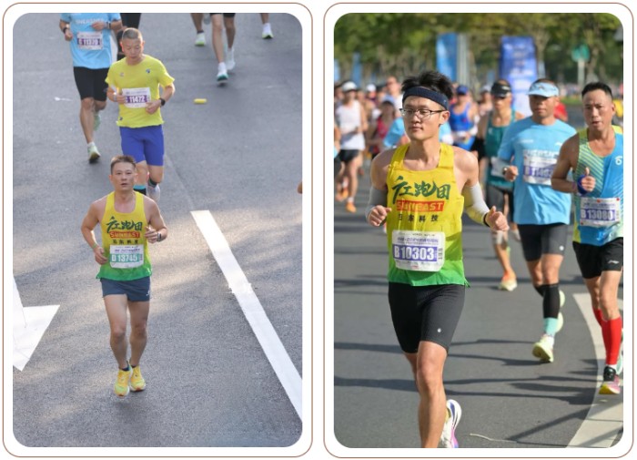 在比賽當天,廣工大的隊員們穿著統一的日東科技定制運動服,在陽光明媚的早晨出發。他們用腳步丈量城市的每一寸土地,呼吸著清新的空氣,享受運動帶來的快樂!沿途觀眾的熱情加油聲此起彼伏,為選手們注入了源源不斷的動力。最終,廣工大所有隊員都成功完成了全程的比賽,以實際行動詮釋了什么叫堅持到底,其中,黃文龍選手以2:45:53的凈成績跑完全程,在17195名參賽者中獲得了排名101的好成績!