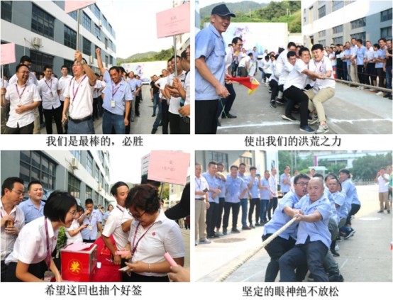 歡呼聲突然伴隨著哨聲響起,裁判宣布生產隊取得了第一輪的勝利。售后與人力行政聯隊力戰銷售與財務聯隊、供應鏈聯隊,拿下兩連勝的佳績,沖入決賽,與勁敵生產隊正式PK。挑完邊,兩邊的選手都已在欲欲躍試,顯得迫不及待要與對手開始撕殺分個高下,繩子被雙方拽得緊緊地一動不動,哨響旗落,加油聲此起彼伏,隊員們咬緊牙,臉崩得通紅,不敢放松一下。“贏了”,一邊的人群突然歡呼起來,售后與人力行政奪得拔河比賽的最終勝利!