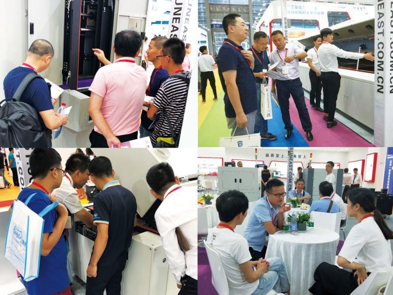 展會第一天,智能裝備展協(xié)會領(lǐng)導(dǎo)同政府領(lǐng)導(dǎo)來到日東科技展臺參觀指導(dǎo),由林曉新總經(jīng)理向現(xiàn)場觀眾講解日東參展設(shè)備。
