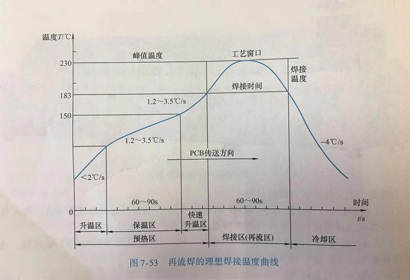 (3) 回流焊工藝的基本過程:一般的,一個完整的回流焊工藝基本流程需要經(jīng)過基板傳送、預(yù)熱、保溫、回流、冷卻等工序。