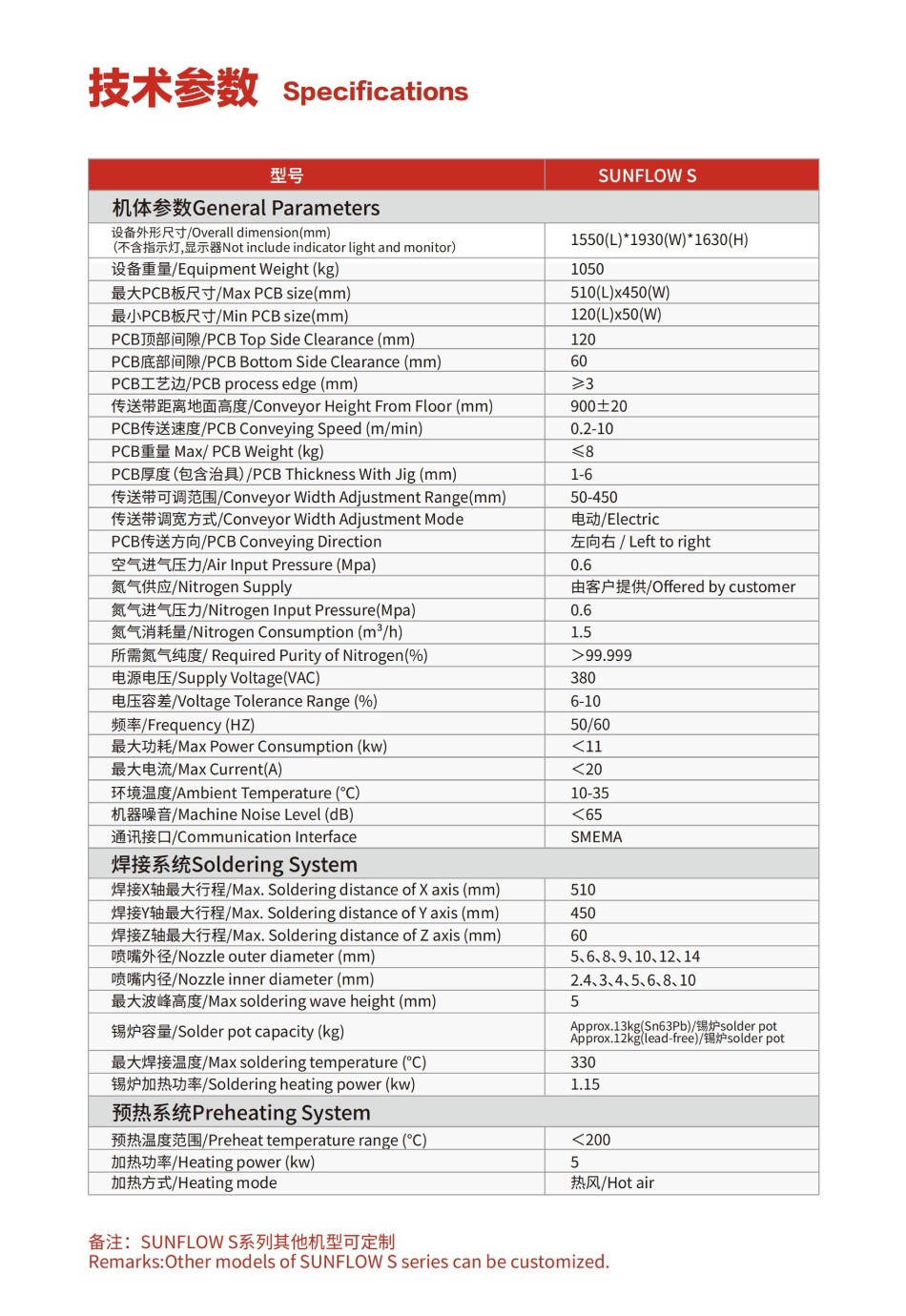 | 備注:SUNFLOW S系列其他機型可定制 | |
